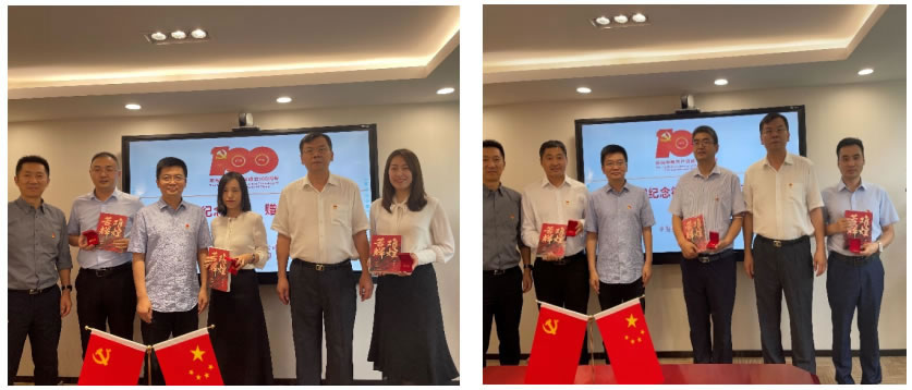 投資公司黨委委員向公司總部黨員發(fā)放建黨100周年紀(jì)念徽章、學(xué)習(xí)書籍,勉勵大家要繼承和發(fā)揚“堅持真理、堅守理想,踐行初心、擔(dān)當(dāng)使命,不怕犧牲、英勇斗爭,對黨忠誠、不負(fù)人民”的偉大建黨精神,融入投資公司事業(yè)發(fā)展中,融入本職工作中,推動公司高質(zhì)量發(fā)展。
