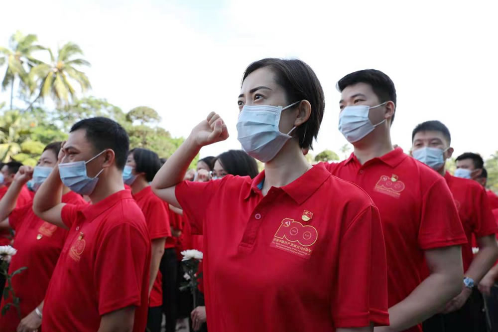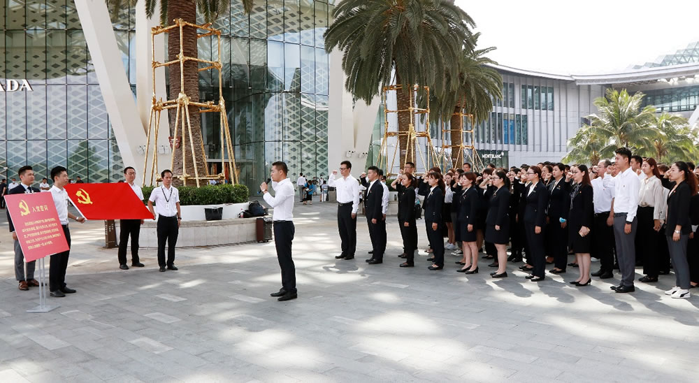 三亞店黨委組織全體黨員進(jìn)行莊嚴(yán)的宣誓活動。一句句鏗鏘有力、擲地有聲的錚錚誓言響徹免稅店上空,是為中國共產(chǎn)黨成立100周年獻(xiàn)禮,更是對黨、對人民的鄭重承諾。