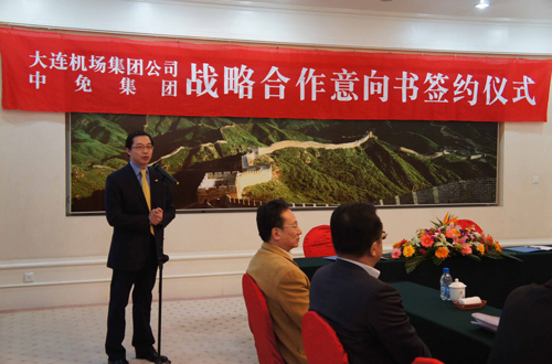 為了確保擴(kuò)建后的大連機(jī)場(chǎng)擁有完善的服務(wù)功能和高檔的商業(yè)形象,中國(guó)免稅品(集團(tuán))有限責(zé)任公司與大連周水子國(guó)際機(jī)場(chǎng)集團(tuán)公司與于2011年3月10日在大連簽署了戰(zhàn)略合作意向書(shū)。簽約儀式上,大連機(jī)場(chǎng)集團(tuán)公司黨委書(shū)記、副總經(jīng)理任恩巖和中免集團(tuán)總裁盧路分別發(fā)言,大連機(jī)場(chǎng)集團(tuán)公司黨委副書(shū)記、副總經(jīng)理杜志淵和中免集團(tuán)副總裁陳國(guó)強(qiáng)分別代表兩家企業(yè)簽約,雙方領(lǐng)導(dǎo)和來(lái)賓共同見(jiàn)證了簽約全過(guò)程。