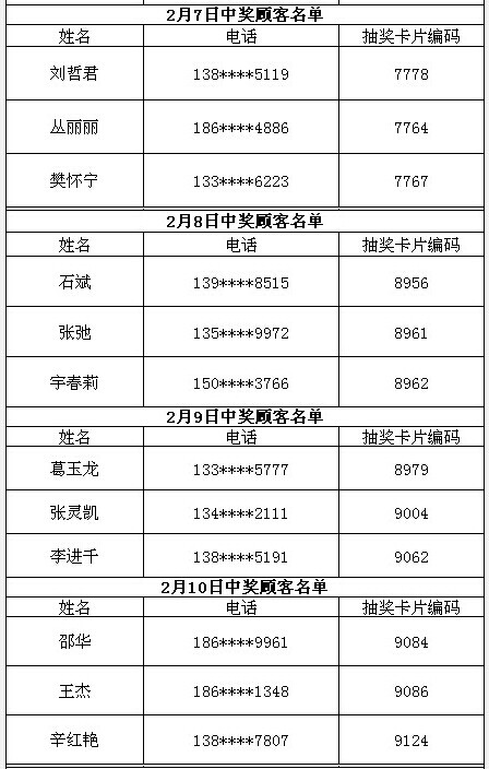 每日中獎(jiǎng)名單公布如下: