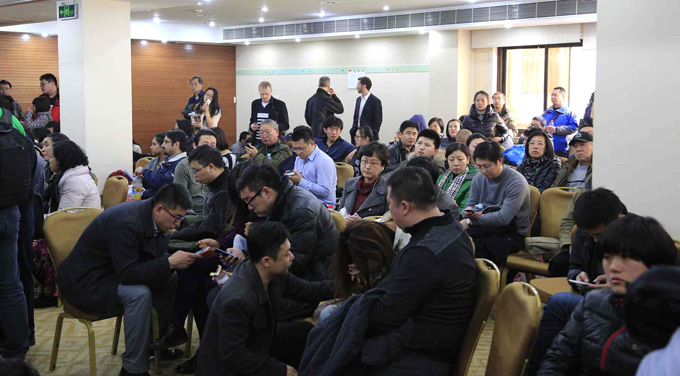 馬航MH370航班乘客家屬在酒店會(huì)議室焦急等待中