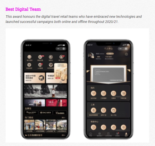 “最佳數(shù)字團隊”獎旨在表彰過去一年內(nèi)全球旅游零售行業(yè)大力倡導數(shù)字創(chuàng)新和先進技術(shù),并成功開展線上+線下活動數(shù)字營銷的旅游零售團隊。為更好滿足消費者需求,中免集團結(jié)合微信營銷生態(tài)系統(tǒng),于2020年11月正式上線“中免會員”微信小程序,經(jīng)過多次迭代和發(fā)展,聚合了工具屬性、內(nèi)容屬性、營銷屬性和電商屬性,為會員和品牌提供周到細致的全方位服務(wù)。