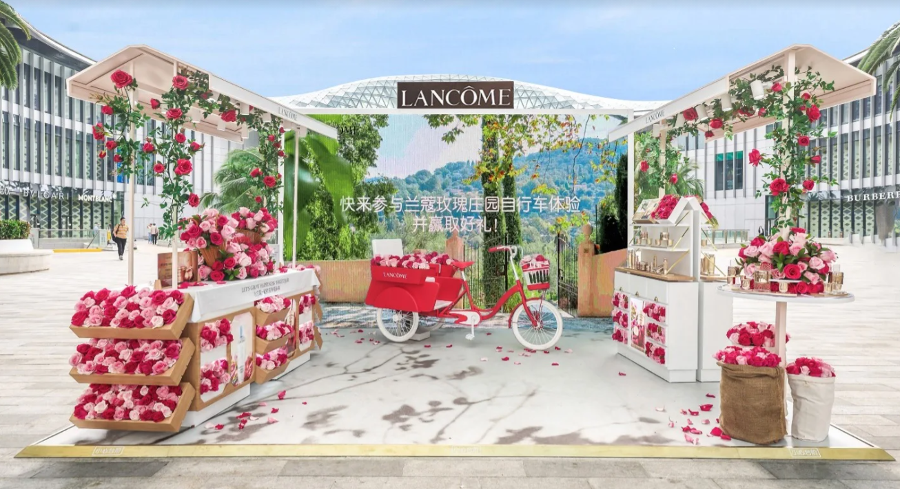 在三亞國際免稅城“一起收獲幸福未來”快閃活動中,游客可通過掃描“可持續(xù)餐桌”上的二維碼創(chuàng)建自己的虛擬玫瑰花束。蘭蔻亞太旅游零售部承諾,消費者每完成一次互動虛擬花束,公司都會在法國格拉斯玫瑰莊園中種植一株專屬的有機玫瑰。消費者還可以參與蘭蔻玫瑰莊園自行車虛擬體驗活動,欣賞玫瑰莊園的美景,并了解可再生能源生產(chǎn)的相關(guān)知識。